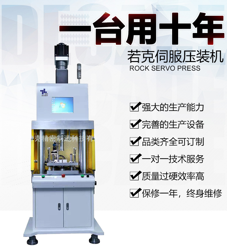 广东若克精密制造有限致力于伺服压装机设备生产和研发创新,专注装配领域和自动化生产线,为客户装配需求提供全面的解决方案,是一家拥有自主知识产权的国家高新技术企业,国内先进的智能伺服压装机设备生产商。公司产品种类齐全,生产各型:伺服压力机,智能伺服压力机电子伺服压力机,桌面型伺服压力机,数控伺服压力机,双头伺服压力机,自动伺服压力机,小型伺服压力机,目前公司已开发出伺服压机设备系列上百款产品。公司拥有专业技术团队,专业技术服务,专业生产制作,公司不断凝聚核心竟争力为助力精密制造发展服务。若克品牌东莞伺服压装机将持续不断地坚持“奉献压装,精益求精”的经营理念,竭诚为大家提供优质产品与服务,真诚期待与广大压装装配企业携手创造美好明天!