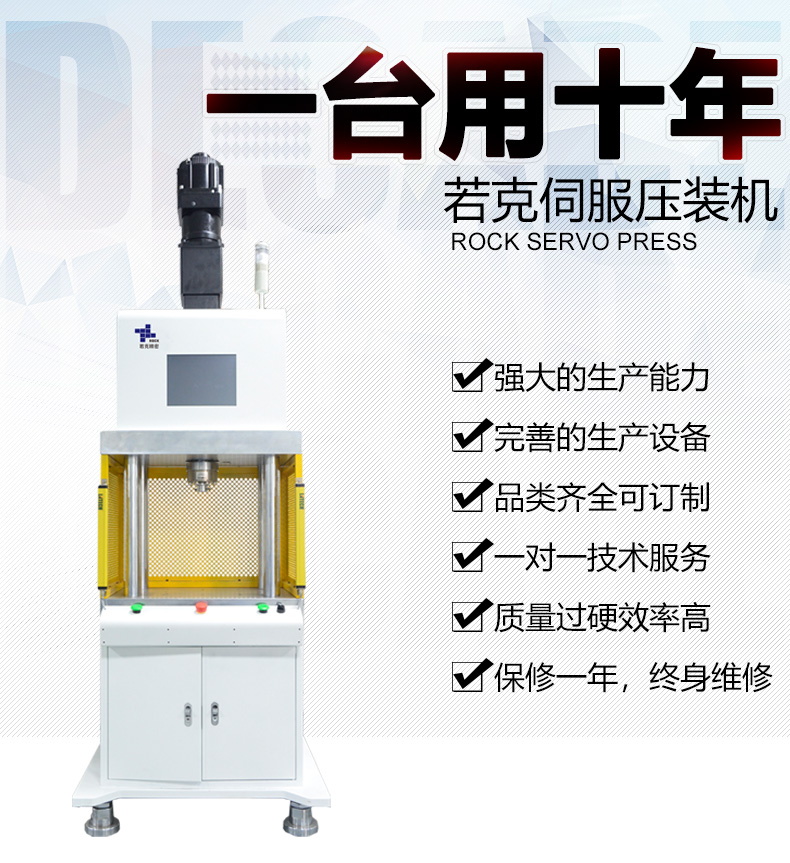 ​广东若克精密制造有限致力于伺服压装机设备生产和研发创新,专注装配领域和自动化生产线,为客户装配需求提供全面的解决方案,是一家拥有自主知识产权的国家高新技术企业,国内先进的智能伺服压装机设备生产商。公司产品种类齐全,生产各型:伺服压力机,C型压力机,轴承压力机,轮轴压装机,单柱压力机,四柱压力机,卧式压力机,立式压力机,小型压装机自动压装机目前公司已开发出伺服压机设备系列上百款产品。公司拥有专业技术团队,专业技术服务,专业生产制作,公司不断凝聚核心竟争力为助力精密制造发展服务。若克品牌国产压装机将持续不断地坚持“奉献压装,精益求精”的经营理念,竭诚为大家提供优质产品与服务,真诚期待与广大压装装配企业携手创造美好明天!
