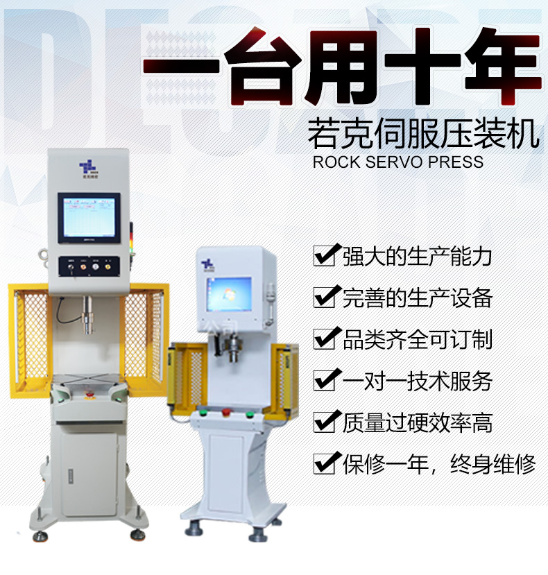 ​广东若克精密制造有限致力于伺服压装机设备生产和研发创新,专注装配领域和自动化生产线,为客户装配需求提供全面的解决方案,是一家拥有自主知识产权的国家高新技术企业,国内先进的智能伺服压装机设备生产商。公司产品种类齐全,生产各型:伺服压力机,轴承压力机,轮对压装机,单柱压力机,四柱压力机,卧式压力机,双头压装机C型压装机,小型压力机,智能压力机目前公司已开发出伺服压装设备系列上百款产品。公司拥有专业技术团队,专业技术服务,专业生产制作,公司不断凝聚核心竟争力为助力精密制造发展服务。若克品牌国产压装机将持续不断地坚持“奉献压装,精益求精”的经营理念,竭诚为大家提供优质产品与服务,真诚期待与广大压装装配企业携手创造美好明天!
