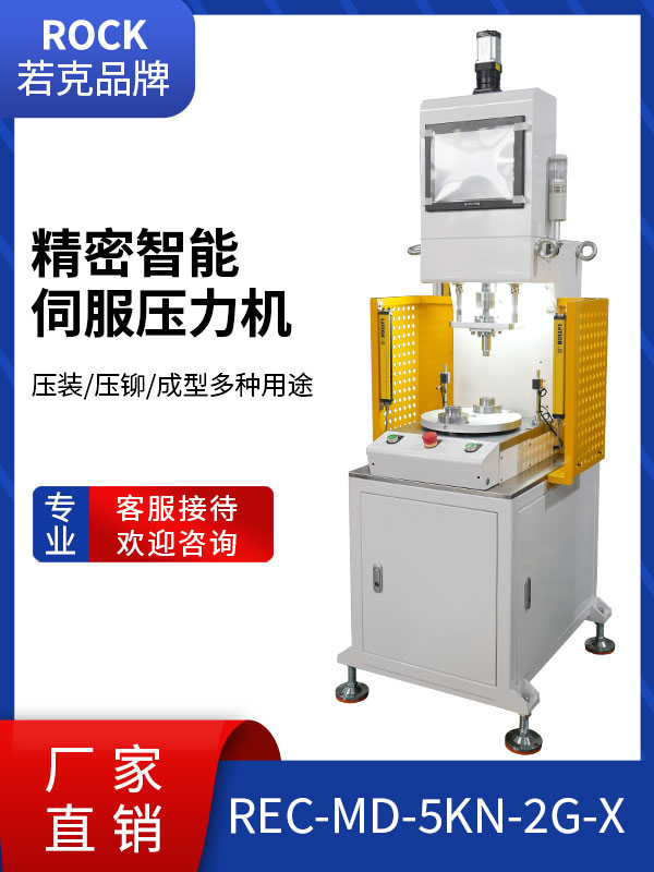 一、提高生产率: 行程长度可设定为生产必要的最小值,可维持与加工内容相适合的成形速度,现有若克主机通过千锤百炼的实验结论,合理定义为0.5T; 2.0T; 5T;10T四款机型,压力涵盖0.1-10T范围,满足精密压装组件的基本需求,如需定制,可做非标选型。