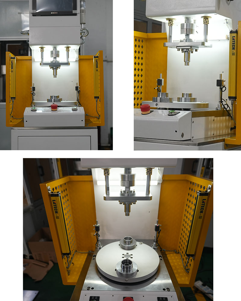 三、安全精密:每台机器均安装红外线安全光栅,有效保护操作人员,伺服智能专利控制匹配最佳的压装方案,确保机器重复定位精度可达0.01mm,压力误差±1%。
