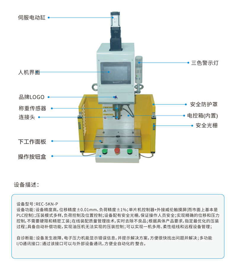 若克精密桌面伺服压力机,桌面伺服压力机,精密桌面压力机特点: