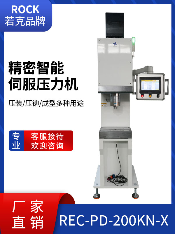 若克伺服压装机系统ROCK PRESS FITTING SYSTEM由主机、控制电脑、机架(选配)组成,结构紧凑,充满力的美感,在体验科技带来的便利之际,令压装工作成为轻松加愉快的享受。 主机:机型结构分为四柱、C型机(建议2T机型以上选用四柱机,更加稳定,行程更长。)
