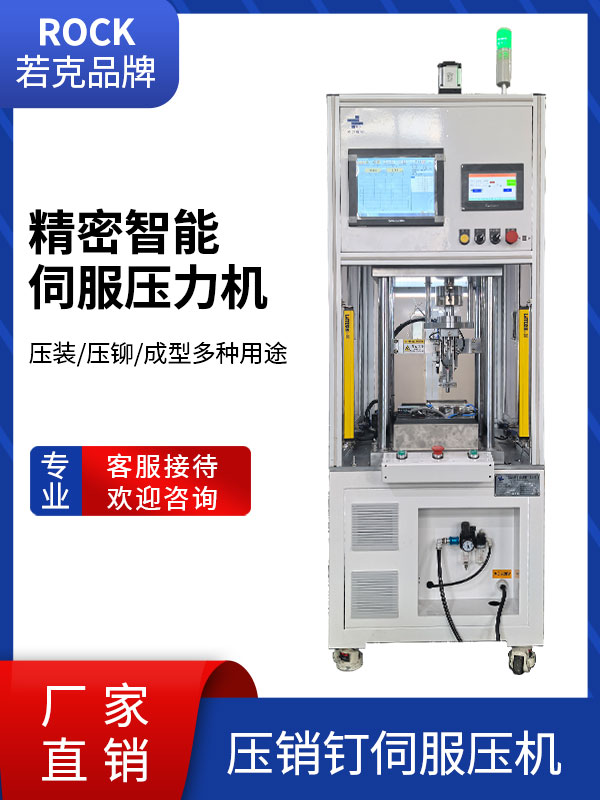 若克伺服压装机系统ROCK PRESS FITTING SYSTEM由主机、控制电脑、机架(选配)组成,结构紧凑,充满力的美感,在体验科技带来的便利之际,令压装工作成为轻松加愉快的享受。 主机:机型结构分为四柱、C型机(建议2T机型以上选用四柱机,更加稳定,行程更长。)