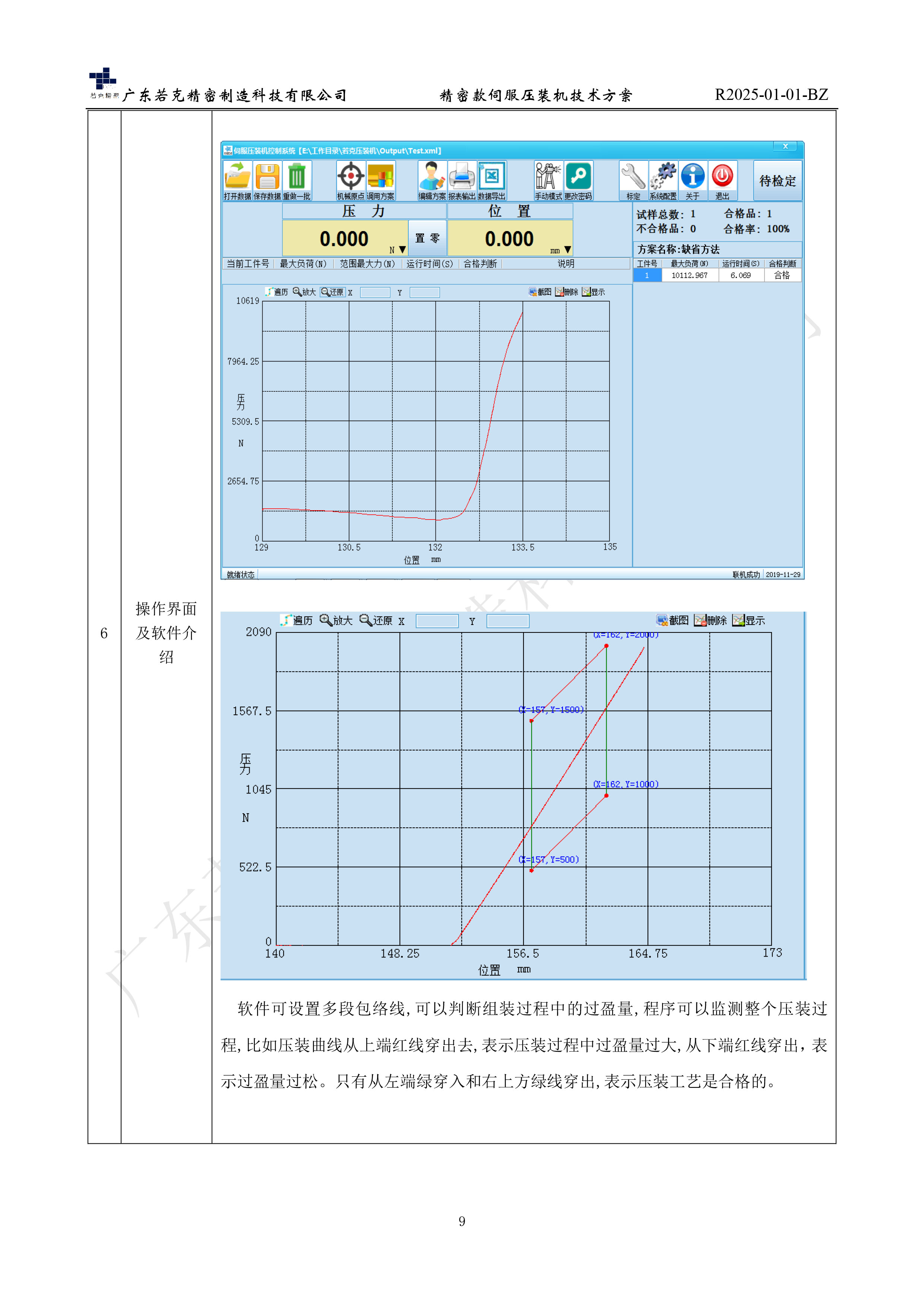 此设备为广东若克的智能型伺服压装机,使用工控电脑控制,能在生产过程中对压装力和位置精确控制,能随时控制压力/停止位置/驱动速度/停止时间,能够在压力装配作业中实现压装力与压入深度的全过程闭环控制。适用于五金、电子、电器、电机、军工、半导体、汽车、航空、医疗等生产需求所研发的高精密压装设备。此伺服压装机可针对压铆、压装、裁切、成型、整平等工艺。下面给大家展示2026广东若克品牌100KN出力四柱型伺服压装机最新图纸解析,不仅是设备功能、参数、外观、外形尺寸的详细介绍,更有操作界面、伺服控制软件介绍。